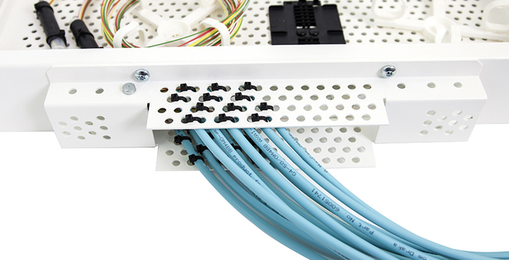 Presses enkelt fast i profilen på stativet ved siden av hver ODF for å hindre skarpe bøyer på patchesnoren. Bøydiameter 30 mm.