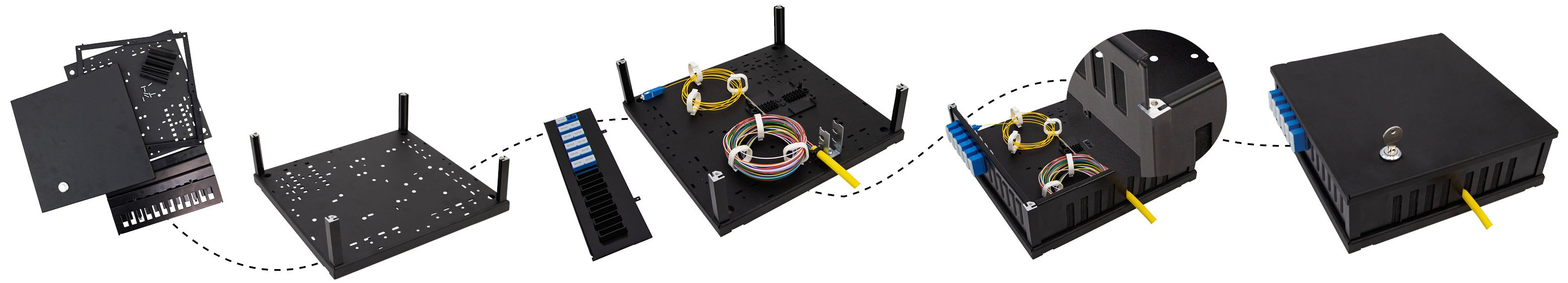 Takket være det fleksible designet kan boksen også brukes som et demarkasjonspunkt der man trenger å koble sammen flere moduler. Det gir stor frihet i planlegging og gjør fremtidig utvidelse enklere.